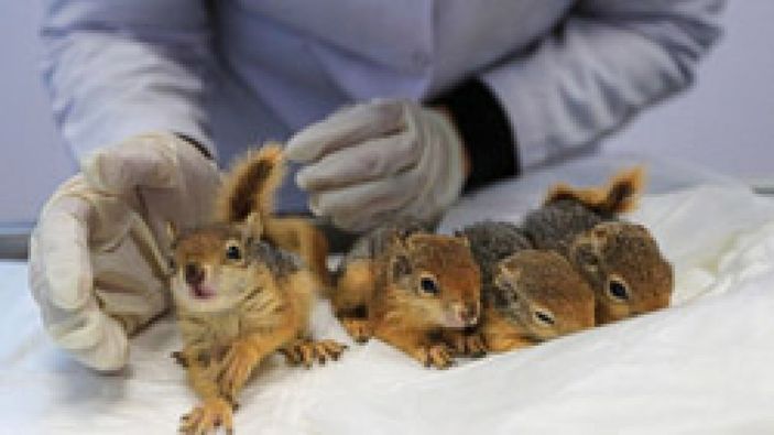 Denizli'de ölmek üzereyken bulunan yavru sincaplar hayata tutundu