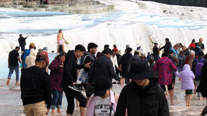 Denizli'de turistler Pamukkale'ye akın etti