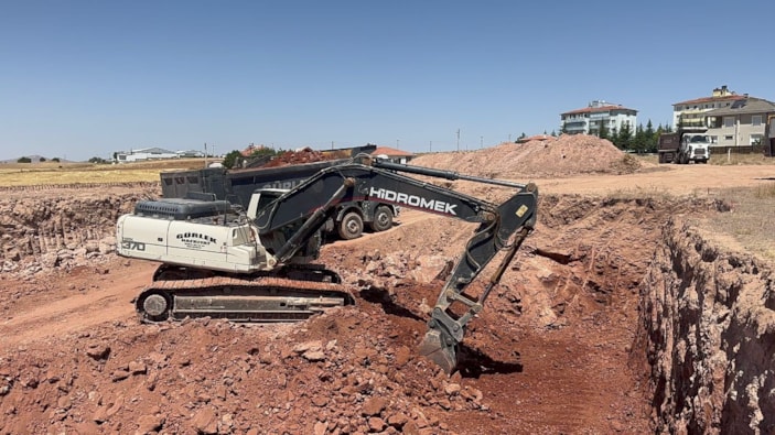 Araziye gelen iş makineleri temel kazmaya başladı.