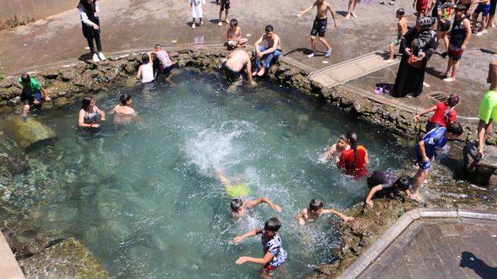 Sıcaktan bunalan çocuklar ise serinlemek için merkez Sur ilçesindeki Anzele havuzuna akın etti.