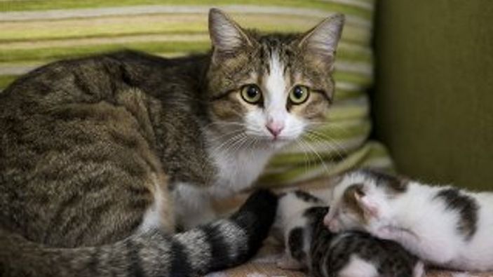 Doğumunu yaptırdığı kediyi ve yavrularını sahiplendi