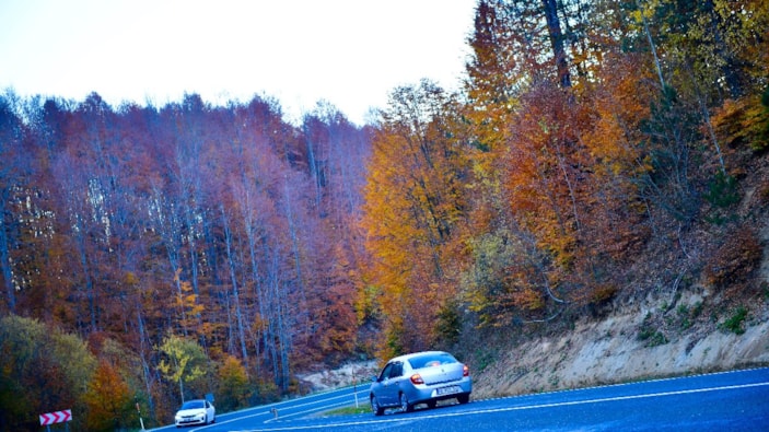 Sürücüler, sonbahar renklerine bürünen yolun keyfini çıkararak yolculuk yapıyor. Yol, manzarasıyla doğa ve fotoğraf tutkunlarının da uğrak noktası haline geldi.
