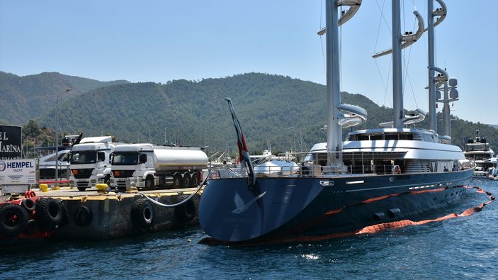 Haftalık kirası 580 bin avro olan 88 metrelik dev yelkenli, Marmaris Cruise Port’a demir attı. Yata 50 bin litre yakıt ve yiyecek-içecek ikmali için 2,5 milyon lira ödendi.