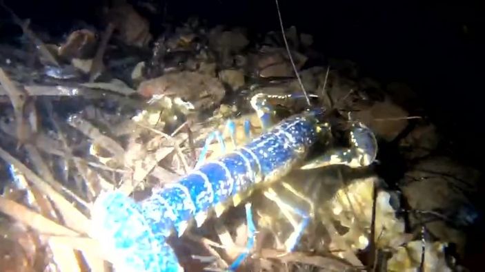 Dünyada 200 milyonda bir görülen bir renk ıstakoz, masmavi bir ıstakozu görüntüledik.
