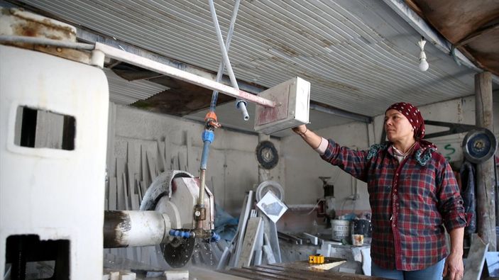 Erkek işi diyenleri umursamayan genç kadın 20 yıldır uğraştığı mermercilikte bütün aşamaları kendisi yapıyor.