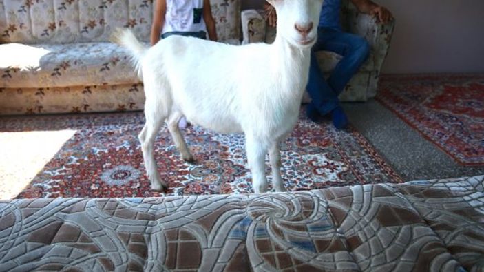 Ayyıldız ailesi, evin maskotu haline gelen keçiyi günlük yaşamlarında bir an olsun yanlarından ayırmıyor.