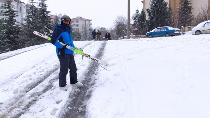 Edirne'de yaşayan emlakçı Lüftü Yılmaz ise kayak takımlarını alarak sokağa çıktı, karla kaplı sokaklarla kayak yaptı.