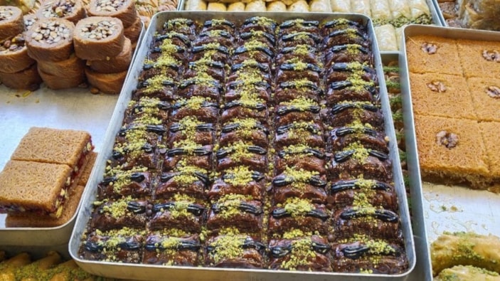 28 yıllık baklavacılık yapan esnaf, ülkemizde son günlerde gündem olan ve insanların tadına bakmak için kuyruk beklediği Dubai çikolatasını yorumlayarak 'Dubai baklavasını' müşterilerin beğenisine sundu.