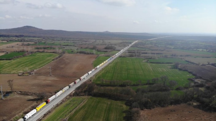Edirne'de sınır kapılarında yoğunluk! Tır kuyrukları kilometrelerce uzadı