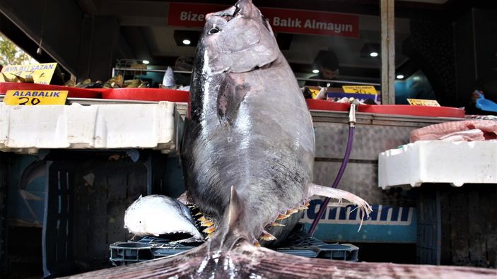 Orkinosun kilosunun 70 liradan satışa çıkarılacağı belirtilirken vatandaşlar da balıkla sırayla fotoğraf çekti.