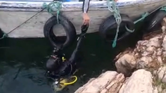 Bölgeye gelen dalgıç, 2 saatlik arama sonucunda telefonu 14 metre derinlikte bularak sahibine teslim etti.