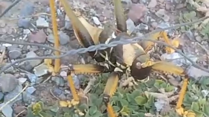 Elazığ'da et yiyen dev çekirge ile sohbet gülümsetti