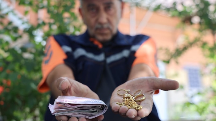 Temizlik yaparken bulduğu altın ve para dolu cüzdanı sahibine ulaştırması için amirleri ile birlikte polise teslim eden temizlik işçisi, "Allah bana haram para yemeyi nasip etmesin" dedi.