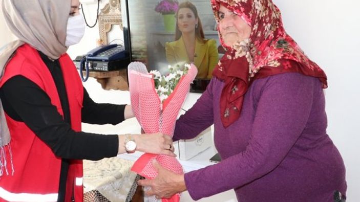 Türk Kızılay Kastamonu Şubesi ekipleri, Anneler Günü'nde Pakize Çevik'i ziyaret ederek çiçek verdi, Çevik ile pasta kesti.