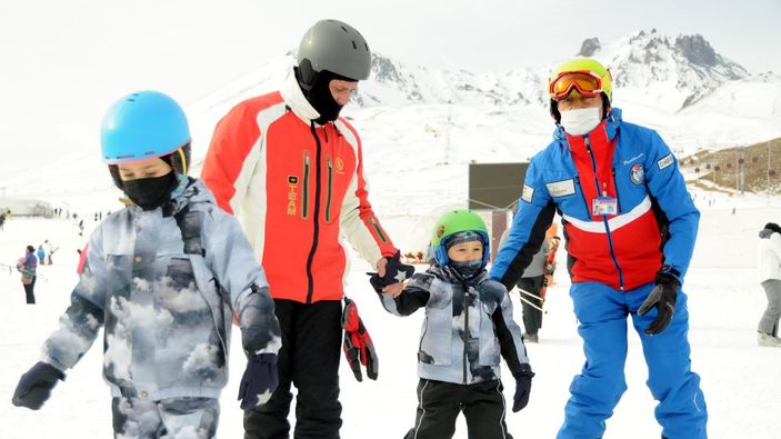 Koronavirüs tedbirleri kapsamında hijyen kurallarının uygulandığı Erciyes'te turistler keyifli zaman geçirdi.