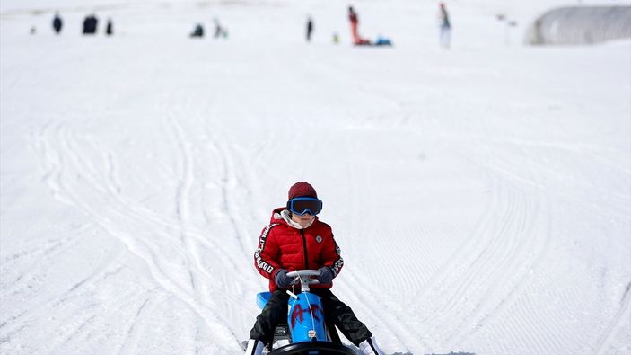 Erciyes'e gelen az sayıdaki tatilci, kayak ve snowboard yaparak keyifli vakit geçirdi.