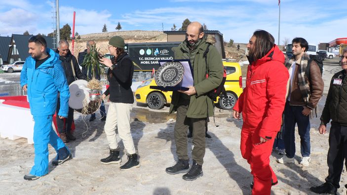 Erzincan'da kayak merkezine gelen İngiliz turistlere davullu zurnalı karşılama