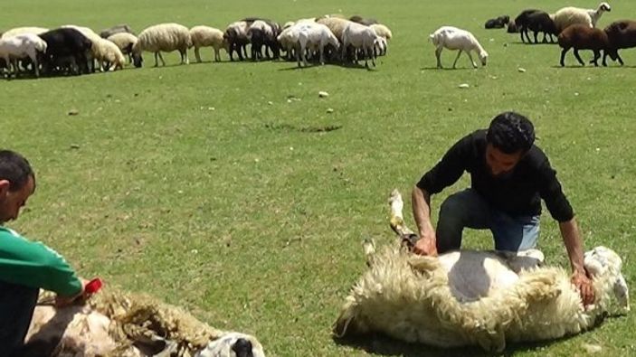Havaların ısınmasıyla 3 bin 370 rakımdaki Munzur Dağı yaylalarına çıkan hayvancılar, hem ekonomik gelir sağlamak için hem de hayvanlarının serinlemesi için koyunlarını kırkmaya başladı.