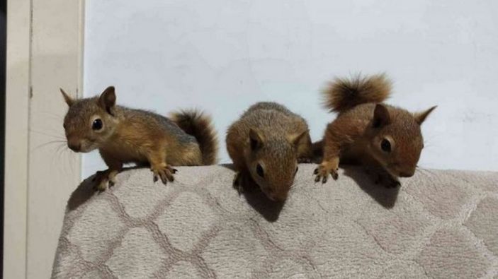 Erzincan’da ölmek üzereyken bulunan 3 yavru sincap, Taşdelen ailesine neşe kattı