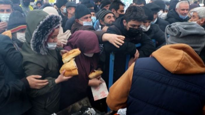 Erzincan'da ücretsiz sucuk ekmek izdihamı