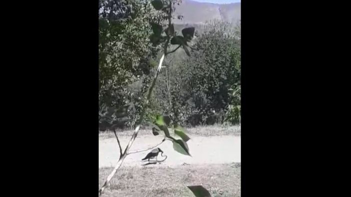 Gözüne kestirdiği yılana saldıran karganın o anları Halil Özkaya ve Serhat Yedikat tarafından cep telefonuyla görüntülendi.