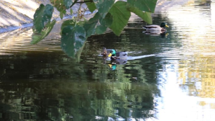 Sonbahar renklerinin büründüğü Porsuk Çayı'nda yeşilbaşların ve diğer ördeklerin keyifle yüzdüğü görüldü. Ördeklerin zaman zaman su kenarından, bazen de uçarak Porsuk'a girdiği gözlendi.