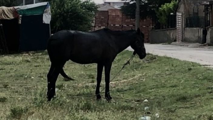 Eskişehir'de bir at sağanak yağışın altında bırakıldı