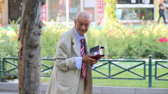 Eskişehir'de yaşayan Ali Ilgın, işten geriye kalan vakitlerinde elinden hiç ayırmadığı teybi kent meydanında geziyor.