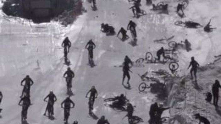 Fransa'nın Les Deux Alpes adlı ünlü kayak merkezine toplanan 700'e yakın bisikletli, yarışmaya başladıktan sonra zincirleme bir kaza geçirdi.