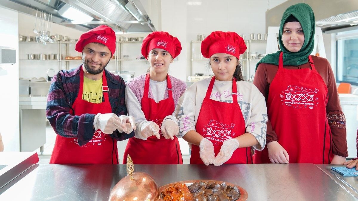 Tabi gastronomi şehri Gaziantep’te aşçılık eğitimi de olmazsa olmaz. Öğrenciler 3’er kişilik gruplarla, engelsiz yaşam merkezinde de gıda mühendislerinden yemek yapmayı öğreniyor.