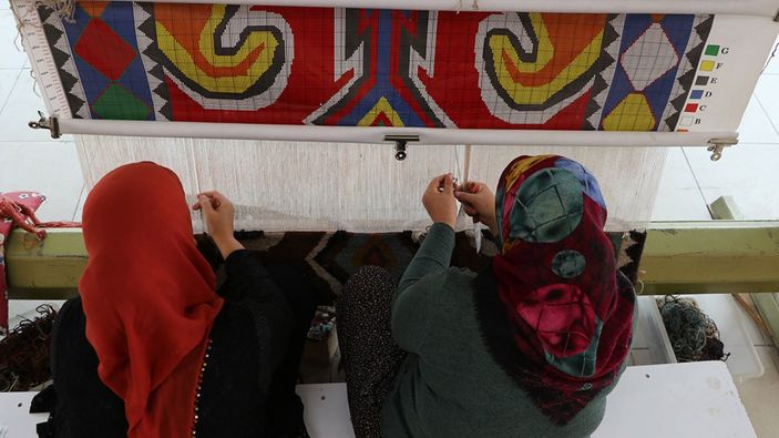 Kadınlar, bölgede yer alan 4 mahallede, açılan halı dokuma kurslarında öğrendikleri teknikleri, halı dokuma tezgahlarına yansıtıyor.