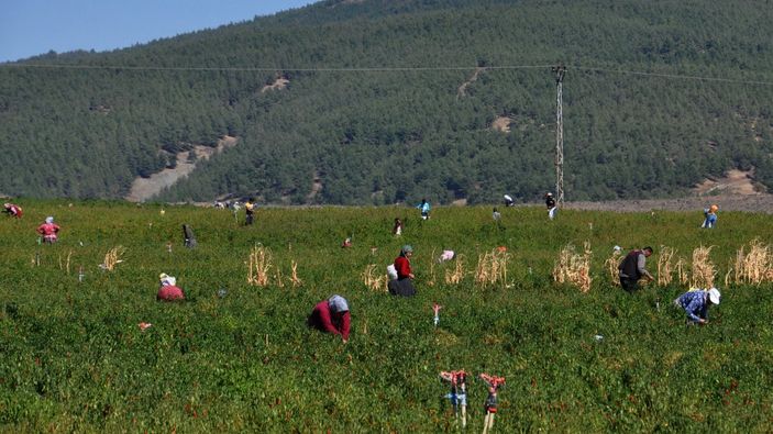 Gaziantep'te işçi bulamayan tarla sahibi, kırmızı biberlerini köylülere bıraktı