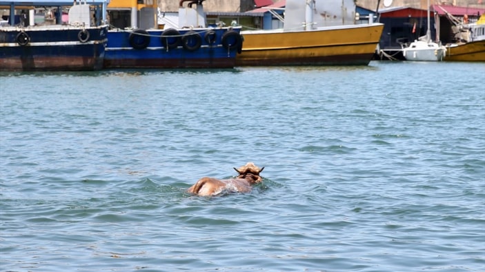 Giresun'da firari kurbanlık kendini denizin serin sularına bıraktı