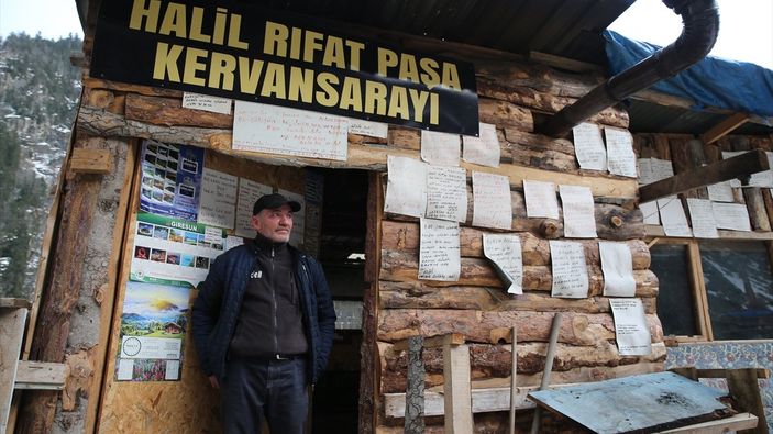 İstanbul'da 35 yıl deri sektöründe çalıştıktan sonra memleketine dönen 54 yaşındaki Adil Sönmez, Giresun'un iç bölgelerdeki ilçeleri ve Sivas ile ulaşımı sağlayan Dereli-Şebinkarahisar kara yolu üzerine ahşap kulübe inşa etti.