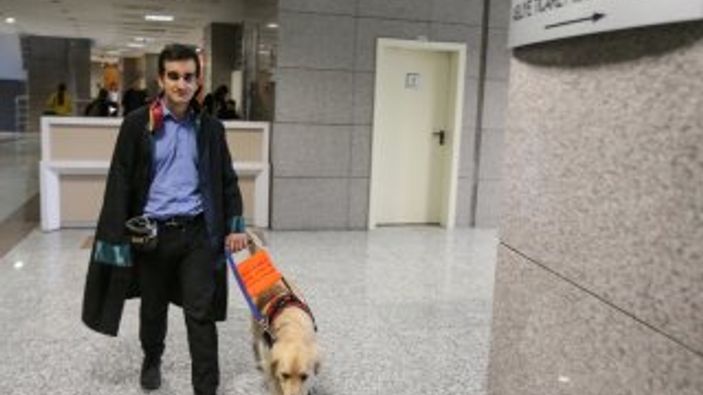 Görme engelli 26 yaşındaki avukat Mustafa Keskin, 3 aydır yaşamını rehber köpeği Tabs ile paylaşıyor. Türkiye'de duruşma salonunun ilk rehber köpeği Tabs, Keskin'le adliye koridorlarını arşınlıyor, duruşma salonunda da Keskin'in yanında mütalaa dinleyip, karar bekliyor.