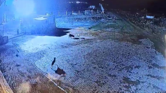 Tekke Beldesi'nde aç kalan kurt sürüsünün bir işletmeye ait depoyu koruyan bekçi köpeğine saldırdığı anlar, güvenlik kameraları tarafından görüntülendi.
