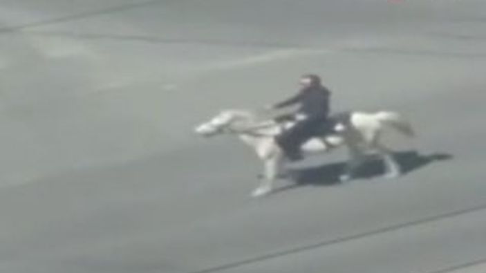 Koronavirüs salgını ile mücadele kapsamında araç kullanımının yasaklanmasının ardından otoyola at ile çıkan bir kişi sosyal medyanın gündemine oturdu.