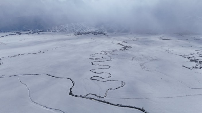 4 köyün içinden geçen Nehil Deresi'ndeki menderesler, beyaz örtü ile birleşince güzel manzaralar ortaya çıktı.