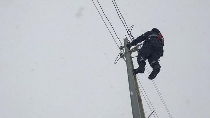 Elektrik arıza ekipleri, yer yer 1 metreyi bulan kar ve soğuk havada yürüyerek ulaştığı bölgelerde, arızalara müdahale etti.