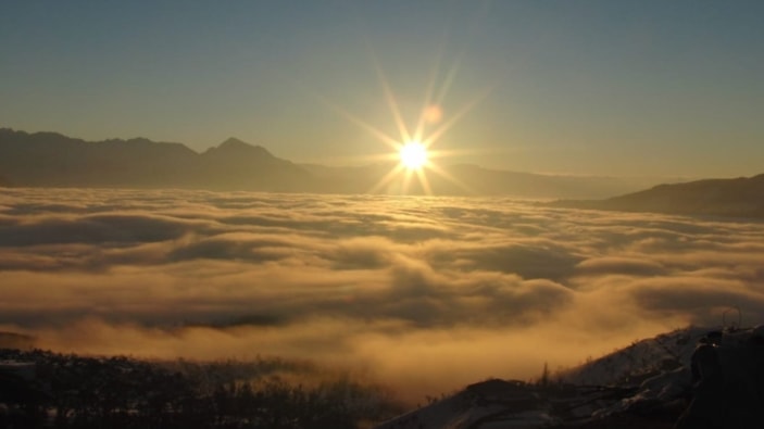 Yüksek tepelerin, sisin arasından çıkması ve sis bulutunun üzerine güneşin doğması ise bölgede güzel görüntüler oluşturdu.