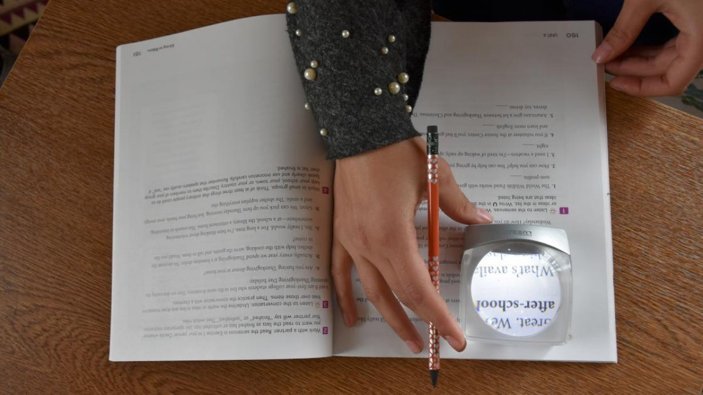 YÜZDE 35 GÖRME ENGELİ ÇIKTI, MERCEK İLE OKUMAYA BAŞLADI
