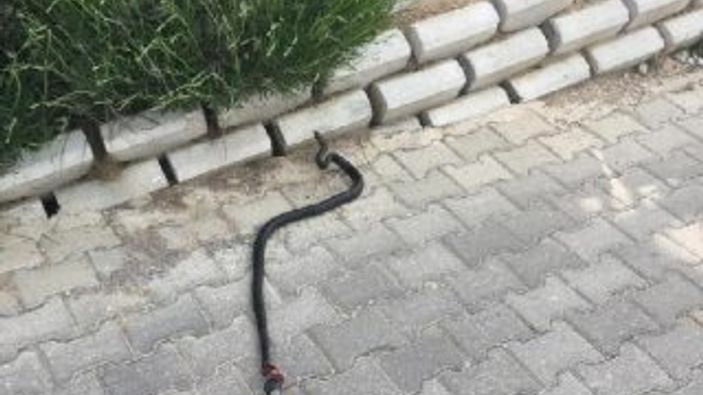 Boyu 1 metreden uzun olan yılan, kullanılan özel ekipmanla yakalandı. Yılanı fileye koyan itfaiyeciler, dağlık alana götürerek, doğaya saldı.