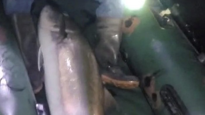 Yakaladığı balık karşısında şaşkınlık yaşayan Suğurtin'in tuttuğu 50 kilogramlık balık sosyal medyada da ilgi odağı oldu.