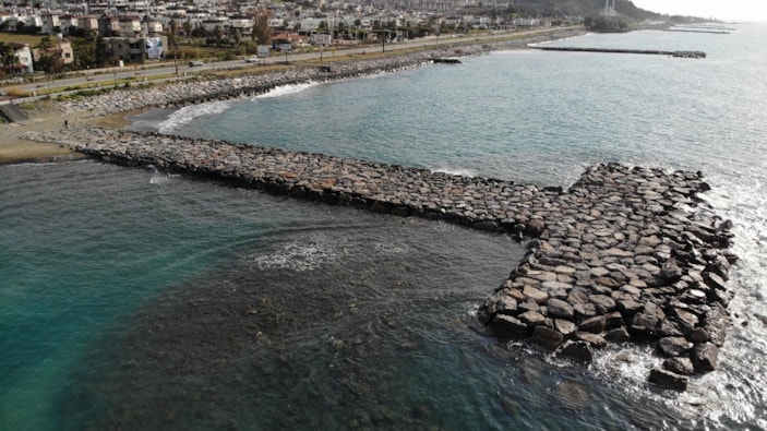 Kentte yaşanan şiddetli fırtına nedeniyle 20 metreyi bulan deniz çekilmesinin yaşandığı Arsuz ilçesinde, deniz seviyesi normale dönmeye başladı. Deniz seviyesinin yükseldiği bölge 'drone'la görüntülendi.