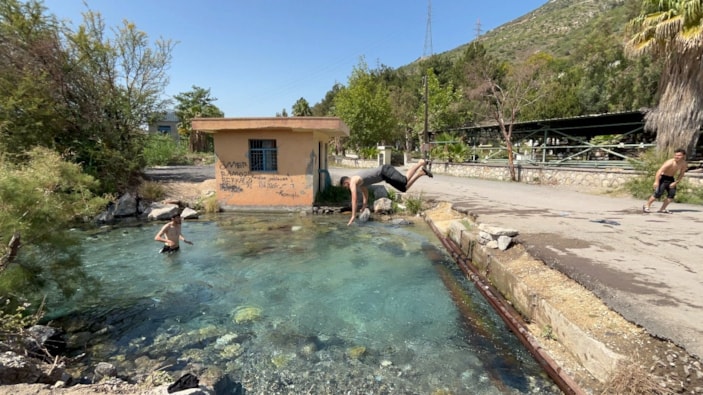 Hatay'da aşırı sıcaktan kaçan ve bayram tatilini fırsat bilen vatandaşlar, doğal kaynak suyunda yüzerek serinledi.