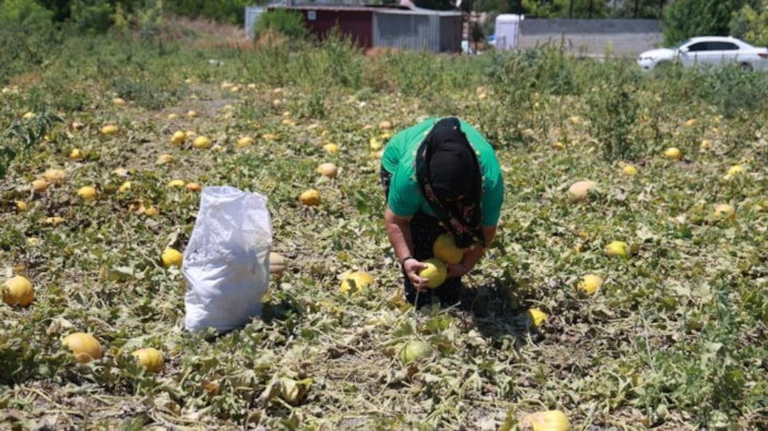 Sabah 08.30’da tarlaya gelip kavun toplamaya başlayan Sabah Özkurt ise, “Sabah 08.30'da geldik. Hava biraz serindi, herkes vardı ama hava sıcak olduğu için herkes koparıp gitti koparacağını. Burada kavun topladık. Bir hayırsever tarlasını depremzedelere bırakmış, Allah bin kere razı olsun. Böyle hayırseverler bazen oluyor.