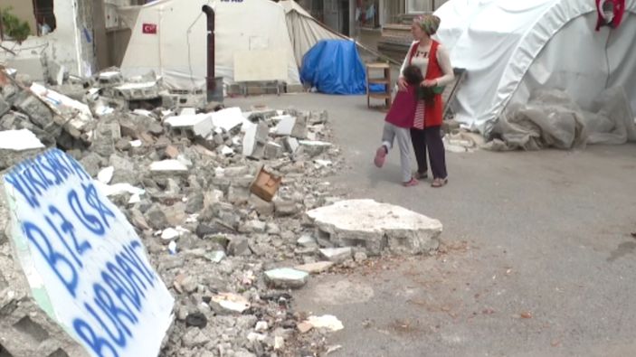 Deprem sonucu Hatay'ın İskenderun ilçesinde evi yıkılan aile, mahalleden ayrımıyor.