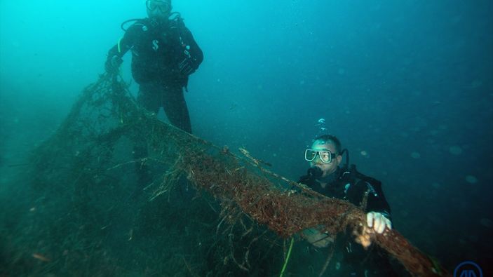 Son dalışta da yaklaşık 200 metre hayalet ağ temizliği yaptıklarına dikkati çeken Aras, "Bütün dalış noktalarında temizlik yapıyoruz. Ne kadar temizlersek temizleyelim balıkçılar takılma riski yüksek olan yerlere bile ağ atıyor." şeklinde konuştu.