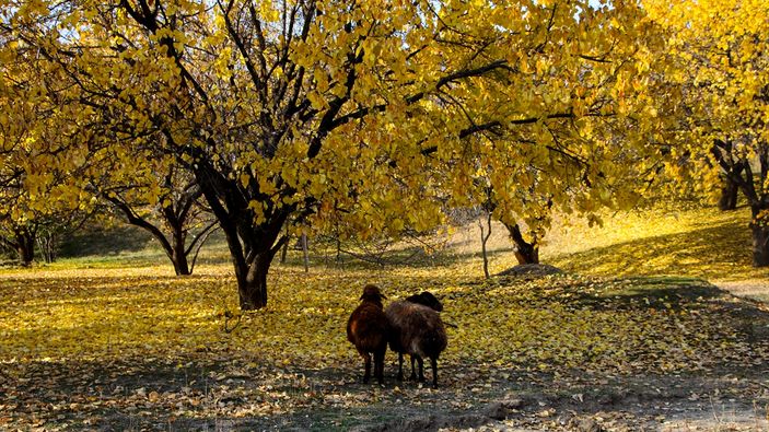 Iğdır'daki 2 bin 550 rakımlı Tekelti Dağı eteklerinde sonbahar renkleri hakim oldu