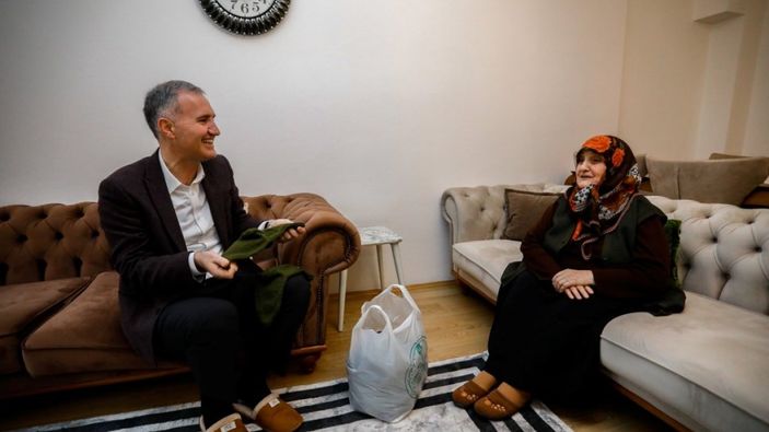 İnegöl'de 10 yıldır eşinden kalan emekli maaşıyla aldığı iplerden çorap örüp ülkenin dört bir yanında askeri birliklere gönderen 86 yaşındaki Melek Şenol'u Belediye Başkanı Alper Taban ziyaret etti.